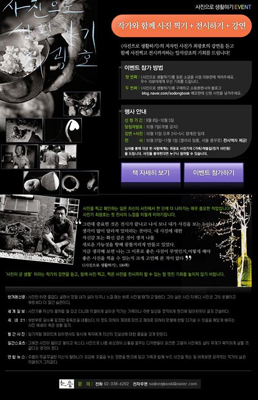 9¿ù 8ÀϺÎÅÍ 10¿ù 5ÀϱîÁö À̺¥Æ®¸¦ ½ÅûÇϸé 10¿ù 11ÀÏ °¿¬ ¹× »çÁøÂï±â Çà»çÀÇ Âü¿© ÇÒ ¼ö ÀÖÀ¸¸ç, 10¿ù 27ÀϺÎÅÍ 11¿ù 1ÀϱîÁö Àü½Ã¿¡µµ Âü¿© ÇÒ ¼ö ÀÖ´Ù. À̺¥Æ® Âü¿©¹æ¹ýÀº ¼Òµ¿ÃâÆÇ»ç ºí·Î±×(blog.naver.com/sodongbook)¿¡¼ È®ÀÎ ÇÒ ¼ö ÀÖ´Ù. |
