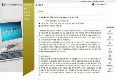 ±¹¸³Çö´ë¹Ì¼ú°üÀº 2008³â 10¿ù 22ÀϺÎÅÍ 28ÀϱîÁö 2008³âµµ ¹Ì¼úÀºÇà ÀÛǰ ±¸ÀÔÀ» À§ÇÑ °ø¸ðÁ¦¸¦ ¿¬´Ù.