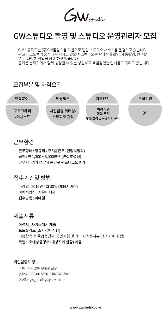 [ä¿ë] GW½ºÆ©µð¿À ÃÔ¿µ ¹× ½ºÆ©µð¿À ¿î¿µ°ü¸®ÀÚ ¸ðÁý