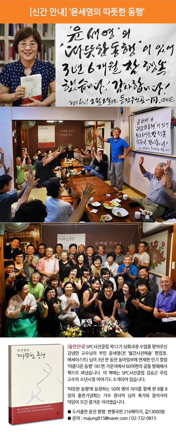 ¿ù°£ »çÁø¿¹¼ú ÆíÁýÀåÀ» ¿ªÀÓÇÑ ÀúÀÚ´Â 35³â µ¿¾È ½Å¹®°ú ÀâÁö»ç¿¡¼ ±ÛÀ» ¾²¸é¼ ¸¸³ ¸¹Àº »ç¶÷µéÀ» ÅëÇÑ ¡®¸¶À½°øºÎ¡¯¸¦ ´©±¸³ª ½±°Ô °ø°¨ÇÒ ¼ö ÀÖ´Â À̾߱â·Î Ç®¾î³Â´Ù. ¡°ÇູÀº Áö±Ý ³» ÁÖº¯¿¡ ¾î¶² »ç¶÷ÀÌ Àִ°¡, ±×¸®°í ³»°¡ ŸÀο¡°Ô ¾î¶² »ç¶÷ÀÌ µÇ¾îÁÖ°í Àִ°¡?¡±¿¡ ´Þ·ÁÀÖ´Ù°í ÀÛ°¡´Â ¸»ÇÑ´Ù. ÁÁÀº Àο¬À» ¸¸³ª°í ¿ì¿¬ÇÑ ¸¸³²Á¶Â÷ ÁÁÀº Àο¬À¸·Î °¡²Ù´Â °ÍÀº ³»°¡ ŸÀο¡°Ô ÁÁÀº Àο¬ÀÌ µÇ¾îÁÙ ¶§ °¡´ÉÇÑ ÀÏÀÌ´Ù.