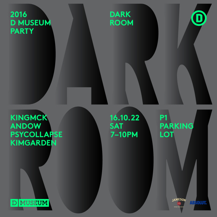 ¸ðµç Âü°¡Àڵ鿡°Ô´Â Á¦ÀÓ½¼(JAMESON) ÁøÀú¿¡ÀÏ Ä¬Å×Àϰú ¾Û¼Ö·çÆ®(ABSOLUT) º¸µåÄ« ĬÅ×ÀÏ 2ÀÜÀÌ ÁõÁ¤µÈ´Ù. ¡®2016 µð¹ÂÁö¾ö ÆÄƼ: ´ÙÅ© ·ë¡¯(2016 D MUSEUM PARTY: DARK ROOM)Àº Çì´õÀ¨ ½ºÆ©µð¿À Àü½ÃÀÇ ¼º¿ø¿¡ º¸´äÇϰíÀÚ ¸¶·ÃµÈ Æä¾îÀ£ ÆÄƼ·Î Âü°¡ÀÚµéÀÌ ´Ù½Ã ÇÑ ¹ø âÀÇÀû ¿µ°¨À» ¾òÀ» ¼ö ÀÖ´Â ½Ã°£ÀÌ µÉ °ÍÀÌ´Ù.