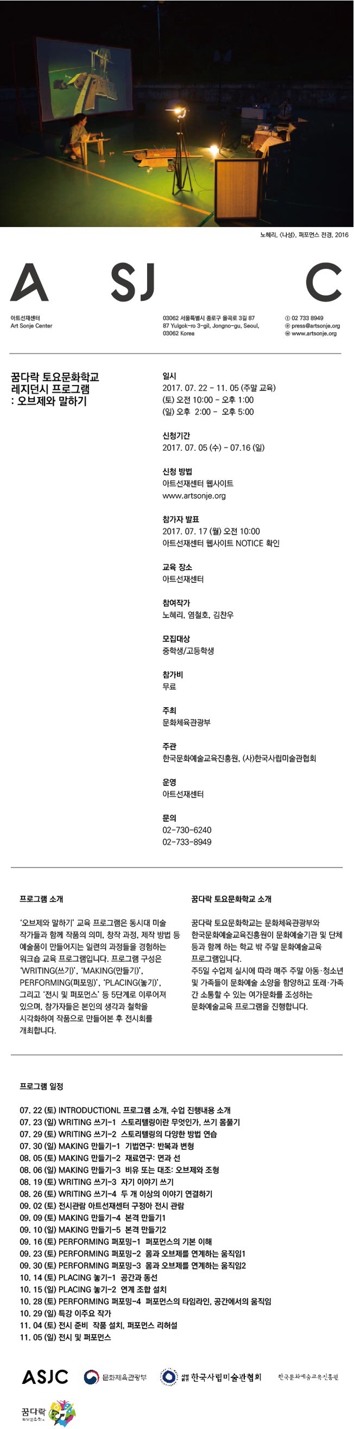 [¾ÆÆ®¼±Àç¼¾ÅÍ] ²Þ´Ù¶ô Åä¿ä¹®ÈÇб³ ·¹Áö´ø½Ã ÇÁ·Î±×·¥: ¿ÀºêÁ¦¿Í ¸»Çϱâ (2017. 07. 22 - 11. 05, ÁÖ¸» ±³À°)