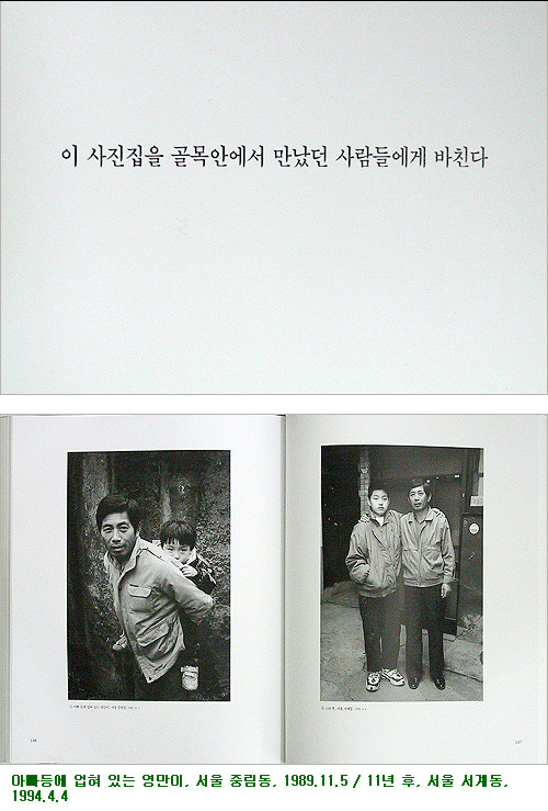 1980³â´ë ¸»ºÎÅÍ ³ªÀÇ °ñ¸ñµéÀº µµ½Ã Àç°³¹ß·Î ¹Ð·Á³ª ¹ö·È°í, 1997³âÀ» ¸¶Áö¸·À¸·Î Á߸²µ¿ °ñ¸ñ±îÁö ±× ¿î¸íÀ» ´ÙÇß´Ù. ¸ÇóÀ½ ¹«³ÊÁ® ³»¸° °ñ¸ñÀº µµÈµ¿ °ñ¸ñÀ̾ú´Ù. ¾ðÁ¨°¡ µµÈµ¿ ²À´ë±â¿¡¼ ´Ù¼¸ »ì Â¥¸® ¼Ò³âÀ» ½Ã³»¸¦ ¹è°æÀ¸·Î ÂïÀº ÀûÀÌ ÀÖ¾ú´Ù. µµÈµ¿ÀÌ ¾ø¾îÁö±â Á÷Àü ±× ¼Ò³âÀ» ½Ê³â¸¸¿¡ ´Ù½Ã ¸¸³ª °°Àº Àå¼Ò¿¡¼ ÃÔ¿µÇÏ°Ô µÈ °ÍÀÌ °è±â°¡ µÇ¾î 1990³â´ë µé¾î¿À¸é¼ºÎÅÍ ¿À·¡ Àü ÃÔ¿µÇß´ø »ç¶÷µéÀ» ¼ö¼Ò¹®ÇØ ´Ù½Ã Âï±â ½ÃÀÛÇß´Ù. ÇÏÁö¸¸ µ¿³×°¡ ¾ø¾îÁö°í »ç¶÷µéµµ »Ô»ÔÀÌ Èð¾îÁø µÚ¶ó »çÁø ÇÑ Àå µé°í ¿©±âÀú±â ¼ö¼Ò¹®ÇÑ´Ù´Â °ÍÀº À̻갡Á· ã±â¸¸ÅÀ̳ª ¾î·Á¿ü´Ù. µ¿³× ¾à±¹, ±³È¸, »§Áý, ±¸¸Û°¡°Ô, Àüö¿ª ÀÔ±¸ µî ½Ê¿©³âÀ» ã¾ÆÇì¸Ç ³¡¿¡ °Ü¿ì »ç½Ê¿© ¸íÀ» ´Ù½Ã ¸¸³¯ ¼ö ÀÖ¾ú´Ù. óÀ½ »çÁø ÀÛ¾÷À» ½ÃÀÛÇÒ ¶§ºÎÅÍ ´Ù½Ã ÂïÀ» °ÍÀ» ¿°µÎÇØ µÎ¾ú¾ú´õ¶ó¸é ÁÁ¾ÒÀ» °ÍÀ̶ó´Â ¾Æ½¬¿òÀÌ ¾øÁö ¾ÊÁö¸¸ ³» ³ª¸§´ë·Î ÃÖ¼±À» ´ÙÇÑ °Í¿¡ ¸¸Á·ÇÒ ¼ö ¹Û¿¡ ¾øÀ» °Í °°´Ù.