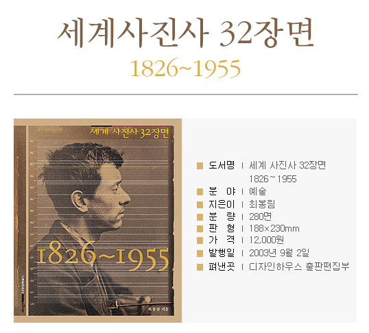 ÀúÀÚ°¡ 2000³â 1¿ùºÎÅÍ 2002³â 10¿ù±îÁö »çÁø Àü¹®Áö¿¡ ¿¬ÀçÇß´ø ±ÛÀ» º¸¿ÏÇØ ¿«Àº ÀÌ Ã¥Àº 1826³â »çÁøÀÇ ¹ß¸í¿¡¼ºÎÅÍ 1955³â ´º¿å Çö´ë¹Ì¼ú°ü¿¡¼ ¿·È´ø »çÁøÀü ¡¶Àΰ£ °¡Á·The Family of Man¡·¿¡ À̸£´Â ¡®»çÁøÀÇ ¿ª»ç¡¯¸¦ ´ã°í ÀÖ´Ù.