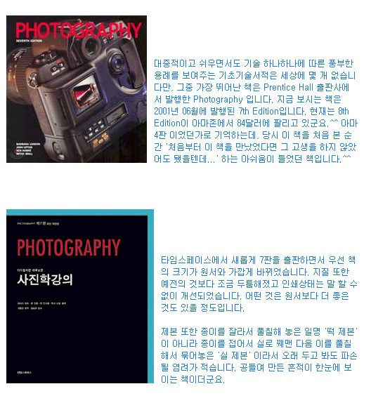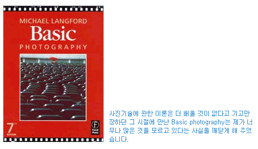 ÇÏÁö¸¸ ±×·² Çʿ䰡 ¾øÀ½À» ±ú´Ý´Âµ¥´Â ±×¸® ¿À·£ ½Ã°£ÀÌ °É¸®Áö ¾Ê¾Ò½À´Ï´Ù. »çÁøÇаú¿¡ ÀÔÇÐÇØ¼ ¾ó¸¶ Áö³ªÁö ¾Ê¾Æ Áö±ÝÀº CF¿Í ¿µÈ ÃÔ¿µ°¨µ¶À¸·Î ÀÏÇϰí ÀÖ´Â ¼±¹è°¡ º¸¿©ÁØ Basic photography´Â ºñ·Ï dzºÎÇÑ »çÁøÀÇ ¿ë·Ê´Â Á» Àû¾úÁö¸¸ Á¦°¡ ¾²°íÀÚ Çß´ø ±× ¹æ½Ä ±×´ë·Î ³Ê¹«³ª ÀÚ¼¼ÇÏ°í ±íÀº ³»¿ëÀ» ´Ù·ç°í ÀÖ¾ú±â ¶§¹®ÀÔ´Ï´Ù.