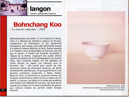 ÇÑÆí, ±¸º»Ã¢Àº Á¦6ȸ »çÁø Æä½ºÆ¼¹úÀÎ ¡®ÇÁ¶û½º ³²ºÎ Áö·Õµå¿¡¼ÀÇ »çÁøÀÇ ¸¸³²¡¯À» °¡Áø ¿¹Á¤. ¿ÃÇØÀÇ Å׸¶´Â ¡®¼¾¼¼À̼ǡ¯À¸·Î, ±×´Â ÃÖ±Ù ÀÛ¾÷ÇÏ´Â Á¶¼±½Ã´ë ¹«¹®¹éÀÚ ÀÛ¾÷À» óÀ½ ¼±º¸ÀÌ°Ô µÈ´Ù. ÀÌ Àü½Ã´Â º¸¸£µµ ±ÙóÀÇ 7°³ Áö¿ªÀÇ ¼º´ç°ú ¿À·¡µÈ Áß¼¼½Ã´ëÀÇ °Ç¹° µîÀ» ÀÌ¿ë, ¸ðµÎ 12¸íÀÇ ÀÛ°¡°¡ Âü¿©Çؼ ¿¸®´Â Àü½Ã·Î, ±¸º»Ã¢ÀÇ ÀÛǰÀº º¸¸£µµ ³²ÂÊ LANGONÀÇ Centre Culturel des Carmes¿¡¼ Àü½ÃµÈ´Ù(2005. 9. 17 - 10. 16). Âü°¡ÇÏ´Â ÀÛ°¡ Áß¿¡´Â ¿ä¼Á ¼öµ¦, ¸³ ȩŲ½º, Àå ¹äÆ¼½ºÆ® ÈØ µîÀÌ Æ÷ÇԵǾî ÀÖ´Ù.