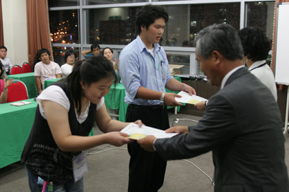 ÀÛǰ ¹ßǥȸ°¡ ³¡³ª°í ¸¶Áö¸· Çà»çÀÎ ¼Ûº°È¸ ¶§¿¡´Â ÇÑÀÏ ÇлýµéÀÌ ¹«Ã´ ¾Æ½¬¿öÇß´Ù. ¾ç±¹ ´ëÇ¥´Ôµé²²¼ ¸¶Áö¸· Àλ縻À» ¸¶Ä£ ´ÙÀ½, ÇÑÀÏ Ä£±¸µé³¢¸® ¼·Î ¿¬¶ôóµµ ±³È¯ÇÏ°í ±â³äÃÔ¿µÀ» ÇÏ¸é¼ ¼®º°ÀÇ Á¤À» ³ª´©¾ú´Ù. ±×¸®°í ÅõÇ¥¸¦ ÅëÇØ¼ Çѱ¹°ú ÀϺ» Çлý °¢ ÇÑ ¸í¿¡°Ô´Â ¿ìÁ¤»óÀÌ ¼ö¿©µÇ¾ú´Ù. Çѱ¹¿¡¼´Â ¾È¾ç¿¹¼ú°íµîÇб³ÀÇ ¼Õ¼¼³ª ¾ç, ÀϺ»¿¡¼´Â ¾ÆÅ°Å¸Çö¸³ ´ÙŰ³ë½º ³ó¸²°íµîÇб³¿¡ »çÅä À¯½ºÄÉ ±ºÀÌ ¼ö»óÇß´Ù. ¿ìÁ¤»óÀ̶ó°í ÇÏ´Â ¶æ ±íÀº »óÀ» ¼ö»óÇÑ µÎ ÇлýÀº ³î¶ó°í ±â»µÇß´Ù.