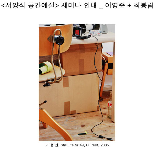 ´ë¸²¹Ì¼ú°ü¿¡¼´Â ¡°´Ù¼¸¸íÀÇ »çÁø°¡°¡ º¸¿©ÁÖ´Â °ø°£ÀÇ »ýü¸®µë¡±À̶ó´Â ºÎÁ¦ ÇÏ¿¡ ÁøÇà ÁßÀÎ, <¼¾ç½Ä °ø°£¿¹Àý> Àü½Ã¿¡ °üÇÑ µÎ ¹øÀÇ ¼¼¹Ì³ª¸¦ ÁøÇàÇÑ´Ù. ÃÖ±Ù ¼¾ç¿¡¼ »Ó¸¸ ¾Æ´Ï¶ó ±¹³»¿¡¼µµ ¡®°ø°£¡¯À» ÁÖÁ¦·Î ´Ù·ç´Â ÀÛ°¡µéÀÌ ¸¹Àºµ¥, Àü½Ã¸¦ ±âȹÇÑ ÀÌ¿µÁØÀÌ 17ÀÏ ÁøÇàÇÏ´Â <Çö´ë¹Ì¼úÀÇ ÀÌÇØ(°¡Á¦)>¿Í ÃÖºÀ¸²ÀÌ ÁøÇàÇÏ´Â 31ÀÏ ¼¼¹Ì³ª´Â(Á¦¸ñ ¹ÌÁ¤), Çö´ë»çȸ¿¡¼ÀÇ ¡®°ø°£¡¯Àº ¾î¶² Àǹ̸¦ ´ã°í ÀÖÀ¸¸ç ÀÛ°¡µé¿¡°Ô ¾î¶°ÇÑ µ¿±âºÎ¿©¸¦ Çϰí ÀÖ´ÂÁö »ý°¢ÇØ º¼ ¼ö ÀÖ´Â ÁÁÀº ±âȸ°¡ µÉ °ÍÀÌ´Ù.