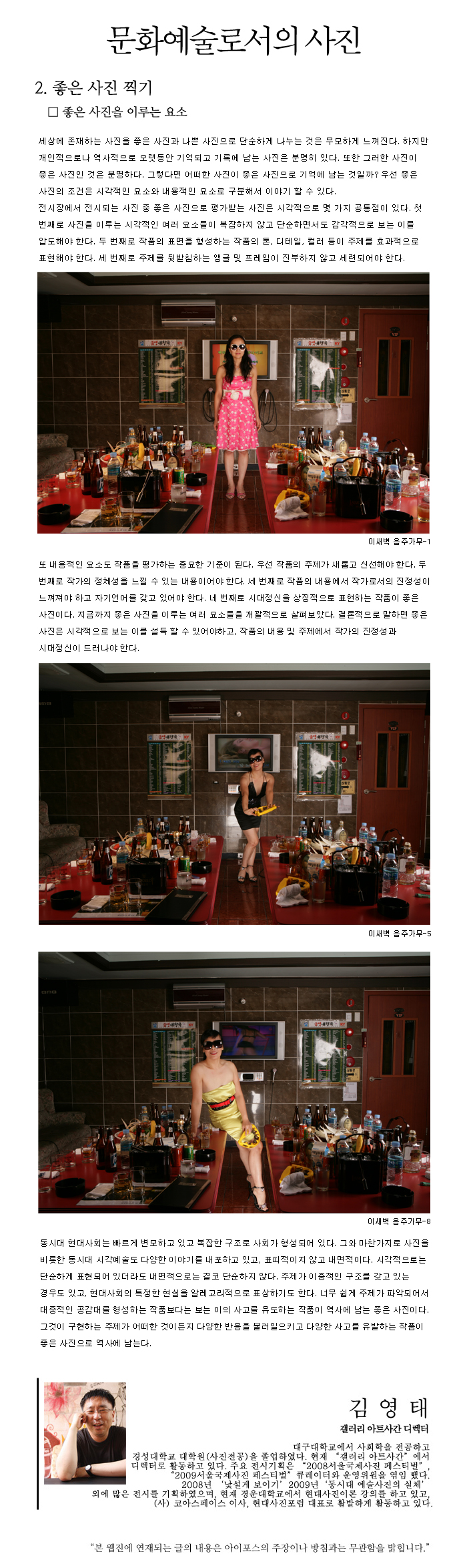 189 ±è¿µÅÂÀÇ `¹®È­¿¹¼ú·Î¼­ÀÇ »çÁø` - Á¦9ȸ ÁÁÀº »çÁøÀ» ÀÌ·ç´Â ¿ä¼Ò 2011.12.23