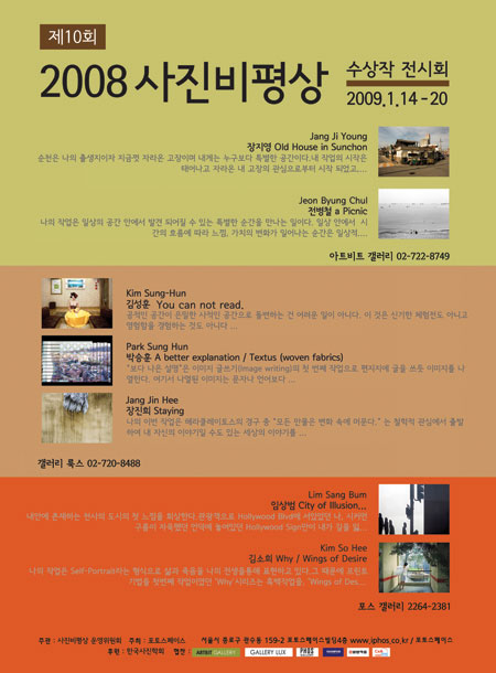 Á¦10ȸ »çÁøºñÆò»ó ¼ö»óÀÛ Àü½Ã°¡ 2009³â 1¿ù 14ÀϺÎÅÍ 1¿ù 20ÀϱîÁö °¶·¯¸® ·è½º, ¾ÆÆ®ºñÆ® °¶·¯¸®, Æ÷½º°¶·¯¸® 2°ü¿¡¼ °³ÃֵȴÙ.