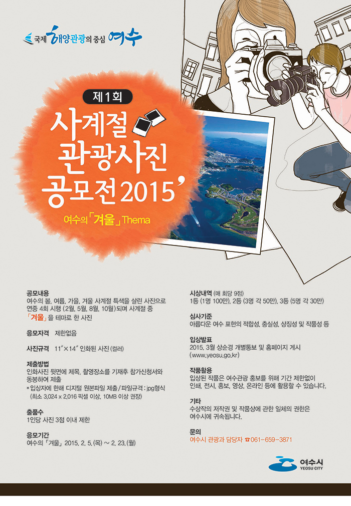 ¿©¼ö½Ã°¡ ¿©¼ö °ü±¤¸í¼ÒÀÇ ¾Æ¸§´Ù¿î dz°æ°ú Ư¼ºÀ» Àß ³ªÅ¸³»´Â »çÁøÀ» ¼±Á¤ÇÏ¿© ¿©¼ö°ü±¤ È«º¸¿¡ Ȱ¿ëÇϰíÀÚ ¿©¼ö »ç°èÀý °ü±¤»çÁø °ø¸ðÀüÀ» ½Ç½ÃÇÑ´Ù.