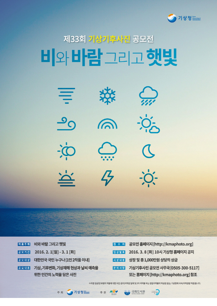 ¡à ±â»óû(ûÀå °íÀ±È)Àº ¼¼°è ±â»óÀÇ ³¯(¸Å³â 3¿ù 23ÀÏ)À» ±â³äÇÏ¿© ÀÏ»ó ¼ÓÀÇ ±â»ó±âÈÄ»çÁøÀ» ÅëÇÑ ±¹¹Î°úÀÇ ¼ÒÅë±âȸ¸¦ ¸¶·ÃÇϱâ À§ÇÏ¿© ¡®Á¦33ȸ ±â»ó±âÈÄ»çÁø °ø¸ðÀü¡¯À» °³ÃÖÇÑ´Ù.