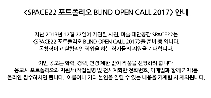 SPACE22 Æ÷Æ®Æú¸®¿À BLIND OPEN CALL 2017 ¾È³» |