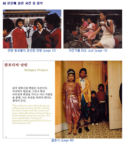 Ä«¸Þ¶ó¸¦ ÀâÀº Áö 30³âÀÌ µÈ´Ù. Çѱ¹¿¡¼ ÂïÀº Áö´Â 15³âÀÌ µÈ´Ù. ¿Ã¸²ÇÈÀÌ ³¡³ª°í ³ª´Â ¸¹Àº »çÁø ÀÏÀ» Çѱ¹¿¡¼ Á¢ÇÏ°Ô µÇ¾ú´Ù. ÀâÁöÀÏ, ¿Ü½ÅÀÏ, ±¤°íÀÏ, ±â¾÷ BrochureÀÏ... ÀÌ ¸ðµç ÀÏ¿¡ °øÅëÁ¡ÀÌ ÀÖ´Ù¸é ³» ¿¡³ÊÁö¿Í ¿Á¤ÀÌ µé¾î°¬´Ù´Â °ÍÀÌ´Ù. ¾ðÁ¨°¡ ¾î¶² Çлý¿¡°Ô¼ ¡®»çÁøÀ» ¿Ö Âï´À³Ä¡¯´Â Áú¹®À» ¹ÞÀº ÀûÀÌ ÀÖ´Ù. ÈçÈ÷µé ¡®ÁÁÀº »çÁøÀ» ¾ò±â À§Çؼ ¡¯¶ó°í »ý°¢ÇÒÁöµµ ¸ð¸£°Ú´Ù. ±×º¸´Ù ³ª´Â »çÁø Âï´Â°úÁ¤À» Áñ±ä´Ù. »çÁø Âï´Â °úÁ¤¿¡¼ ³ª´Â ÀϹÝÀεéÀÌ Á¢Çϱ⠾î·Á¿î »ýȰ, »ç¶÷µé, ÇöÀåÀ» ¸¸³¯ ¼ö ÀÖ´Ù. ³ª¿¡°Ô´Â ±×°ÍÀÌ °¡Àå ¼ÒÁßÇÑ °ÍÀÌ´Ù. Áý ¾ø´Â ³ë¼÷ÀÚ¸¦ ÃëÀçÇÒ ¶§¿¡´Â ½Å¹®Áö 4ÀåÀ¸·Î ħ³¶ ¸¸µå´Â ¹ýÀ» ¹è¿ï¼ö ÀÖ´Ù. ¼öÁÝÀ½ ¸¹Àº ºÏÇÑ ¾È³»¿ø°ú´Â À̺°ÀÇ ¾Æ½¬¿òÀ¸·Î ±â³ä»çÁøÀ» Âï±âµµ Çß´Ù.